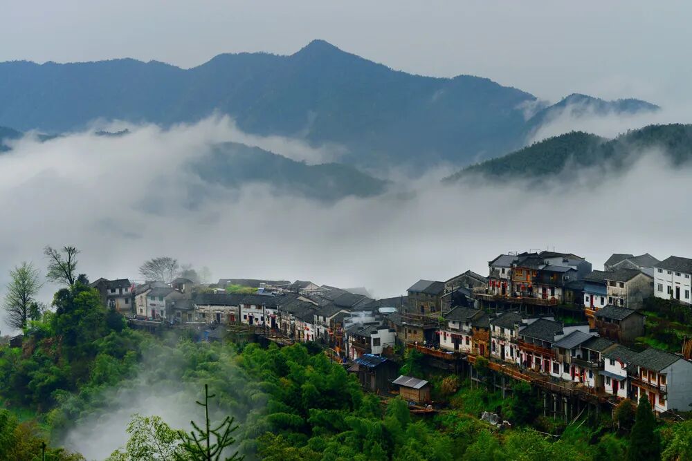生态绝佳,地处山脊,三面悬空,徽风浓郁,被誉为“黄山最美的高山村落”。