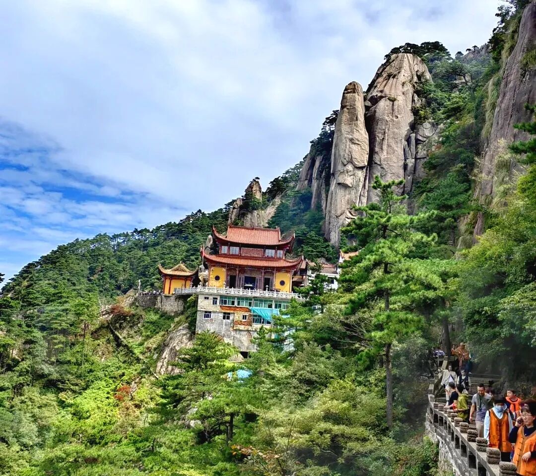 7点半出发,前往齐云山,之后乘坐索道上山,经梦真桥,一天门到三天门,玄天太素宫,约1h以后,便来到齐云山的精华所在【月华街】,景区内住宿和餐饮的集中地。